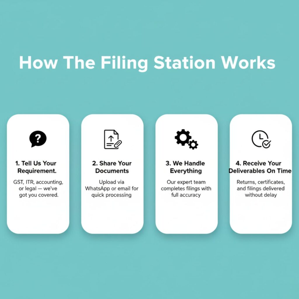 At The Filing Station, our mission is to simplify taxation and compliance for startups, small businesses, companies, and individuals. We handle GST filing, income tax returns, accounting, bookkeeping, TDS returns, company registration, legal drafting, and business compliance. With a CA-verified team and transparent pricing, we make compliance stress-free. Being the Best Chartered Accountant in Bangalore, we offer personalized financial guidance, year-round tax planning, and end-to-end support to ensure your business stays compliant and penalty-free.